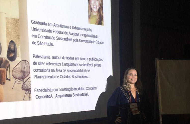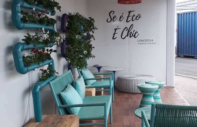 “Para compor o espaço LOFT IN Container da Expo Container City 2019, a arquiteta Fabíola Costa e Silva buscou inspiração na tendência mundial do Recycle, aliando sustentabilidade,design, economia e praticidade. A profissional foca em agregar em um só produto, conceito, agilidade e rapidez, reaproveitando os materiais que serial de descarte, potencializando a produção da casa para em média 80% mais rápida que a convencional. De acordo com Fabíola Costa e Silva, o conceito baseia-se na mobilidade de construção e a facilidade na produção de tempo de montagem em obra.